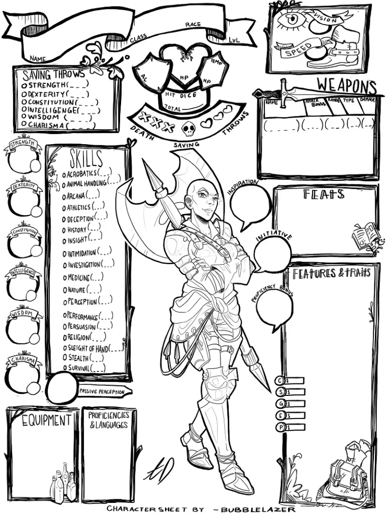 Cualquiera que haya jugado al Dungeons & Dragons (o a algรบn otro juego de rol) conocerรก el concepto de una ficha de personaje. Cada jugador tiene una de estas fichas para darle una idea general de las fortalezas y debilidades de su personaje, mediante puntuaciones para diferentes atributos.